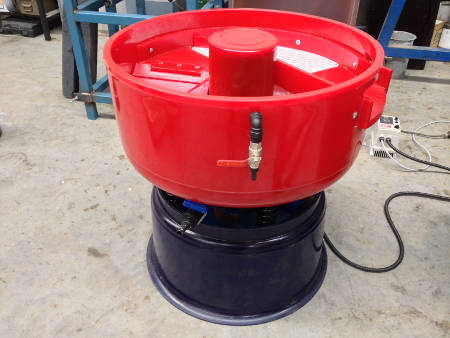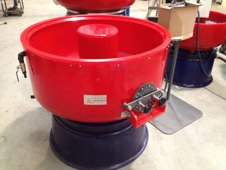 Our "B" series machines are easy to use batch machines. They are made from a special grade polyurethane and cast integrally with a fabricated steel chassis which houses our own design, fully industrial vibratory motor. Being a minimum of 25mm thick and over 80mm thick in the main wear areas, our bowls have been known to work continuously for over 20 years. Mounted on a cast polyurethane base, they transmit no vibration to the floor. Sizes range from 30 litres up to 375 litres working capacity. They are perfect for small manufacturing companies as well as high volume manufacturing plants. Read more